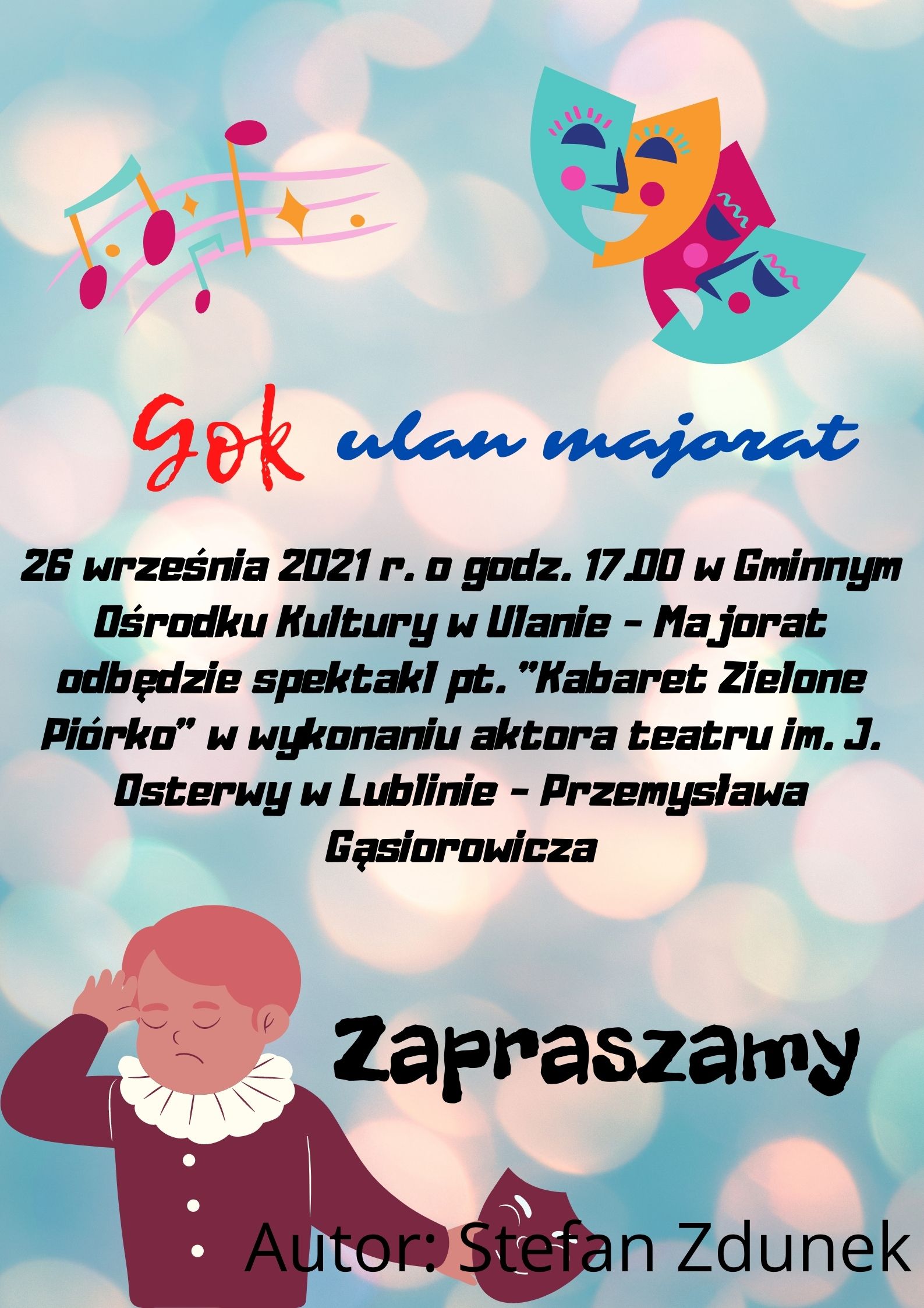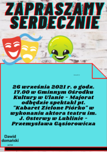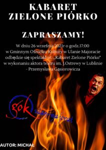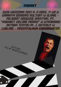 uczestnicy zajęć zdobywając nowe umiejętności, wykorzystali je przy projektowaniu plakatu na spektakl „KABARET ZIELONE PIÓRKO”